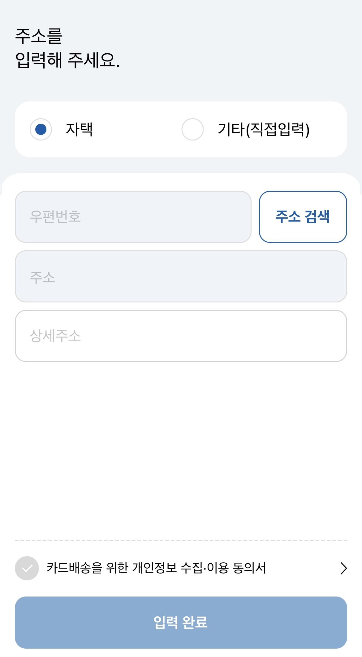 4. 주소입력 -> 진행 완료.