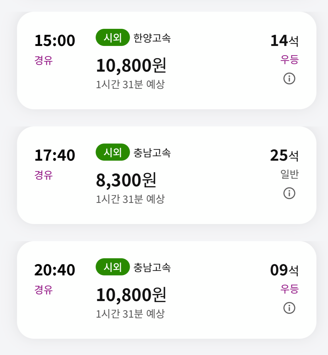 - 이동시간: 2시간~2시간50분