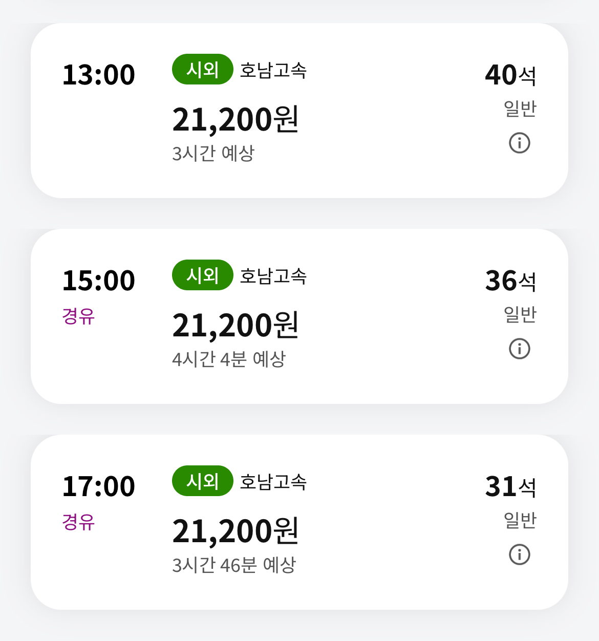 - 이동시간: 3시간~4시간20분