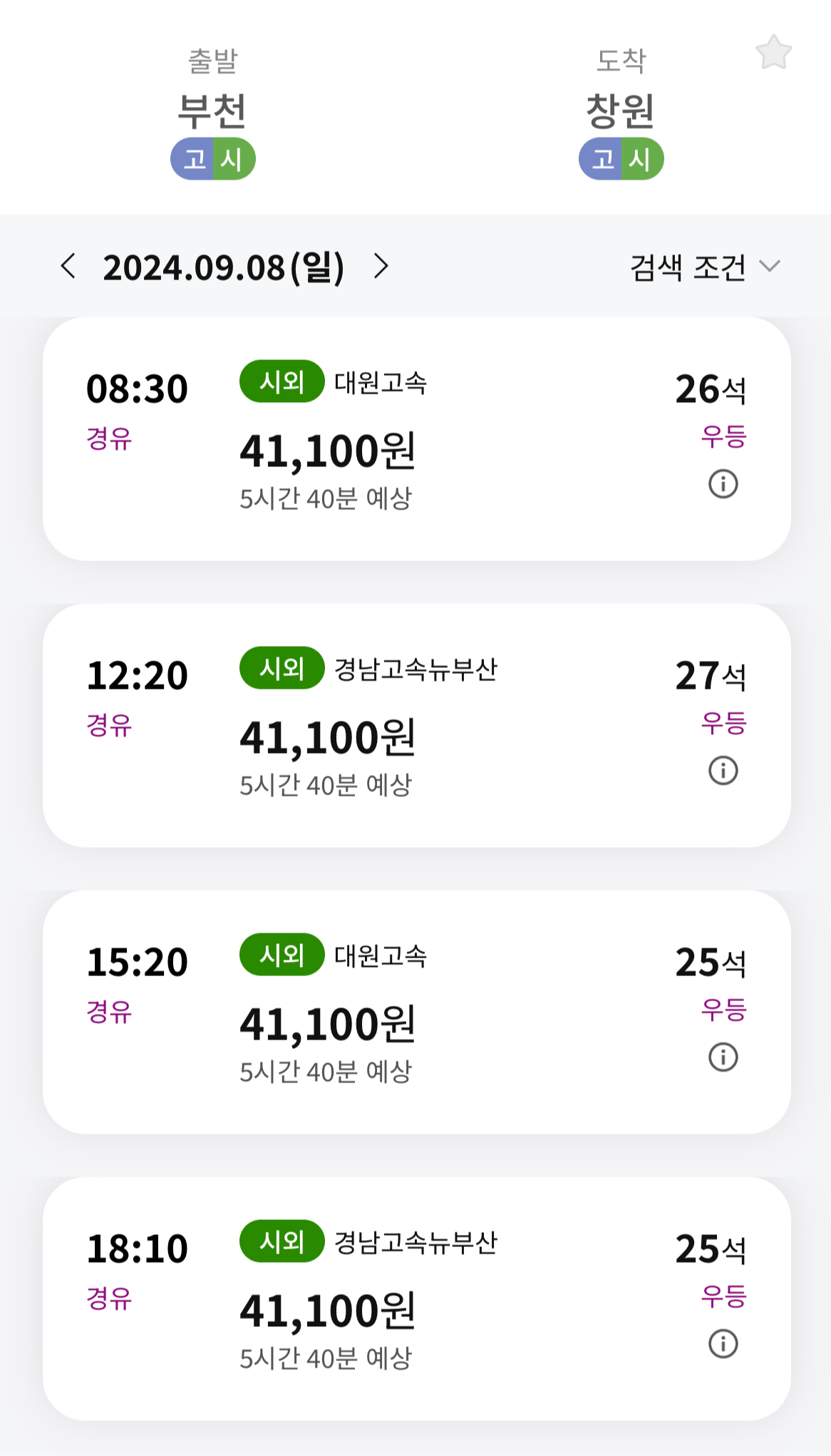 부천 - 창원 버스시간표