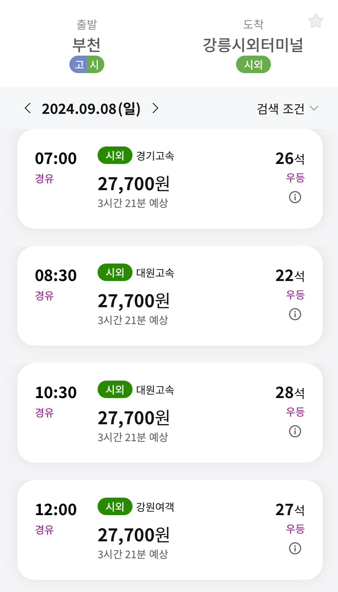 부천 - 강릉 버스시간표