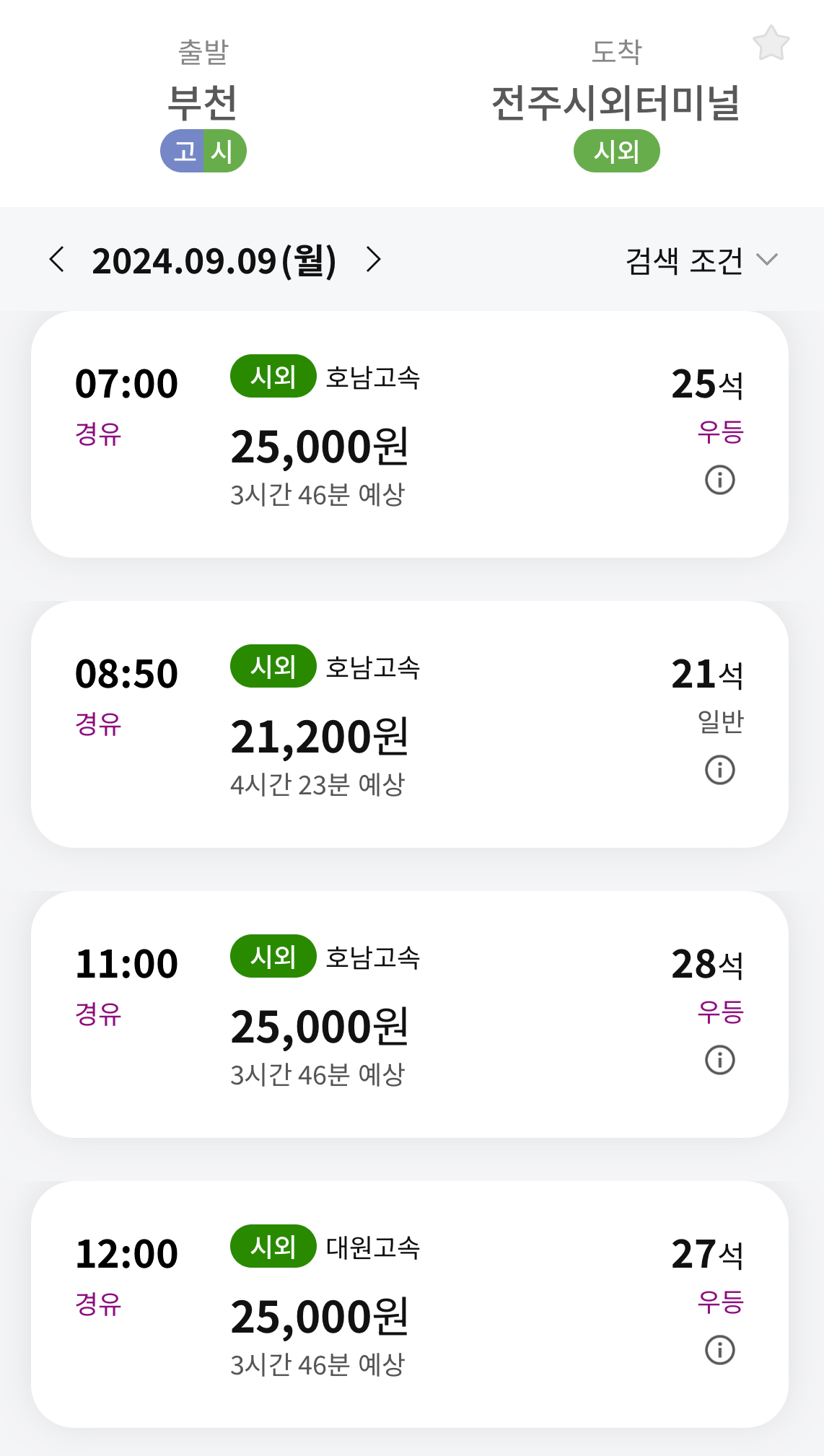 부천 - 전주 버스시간표