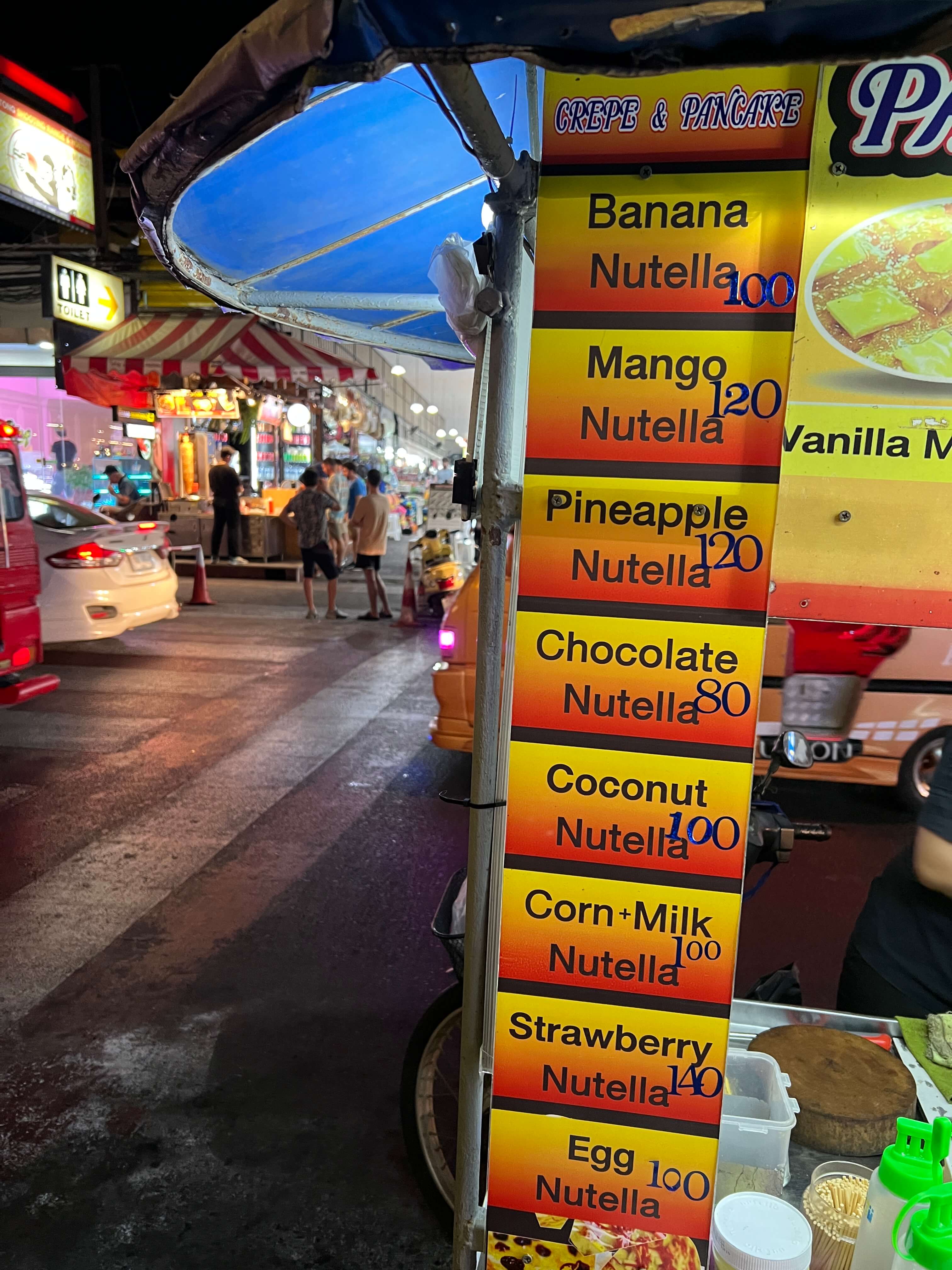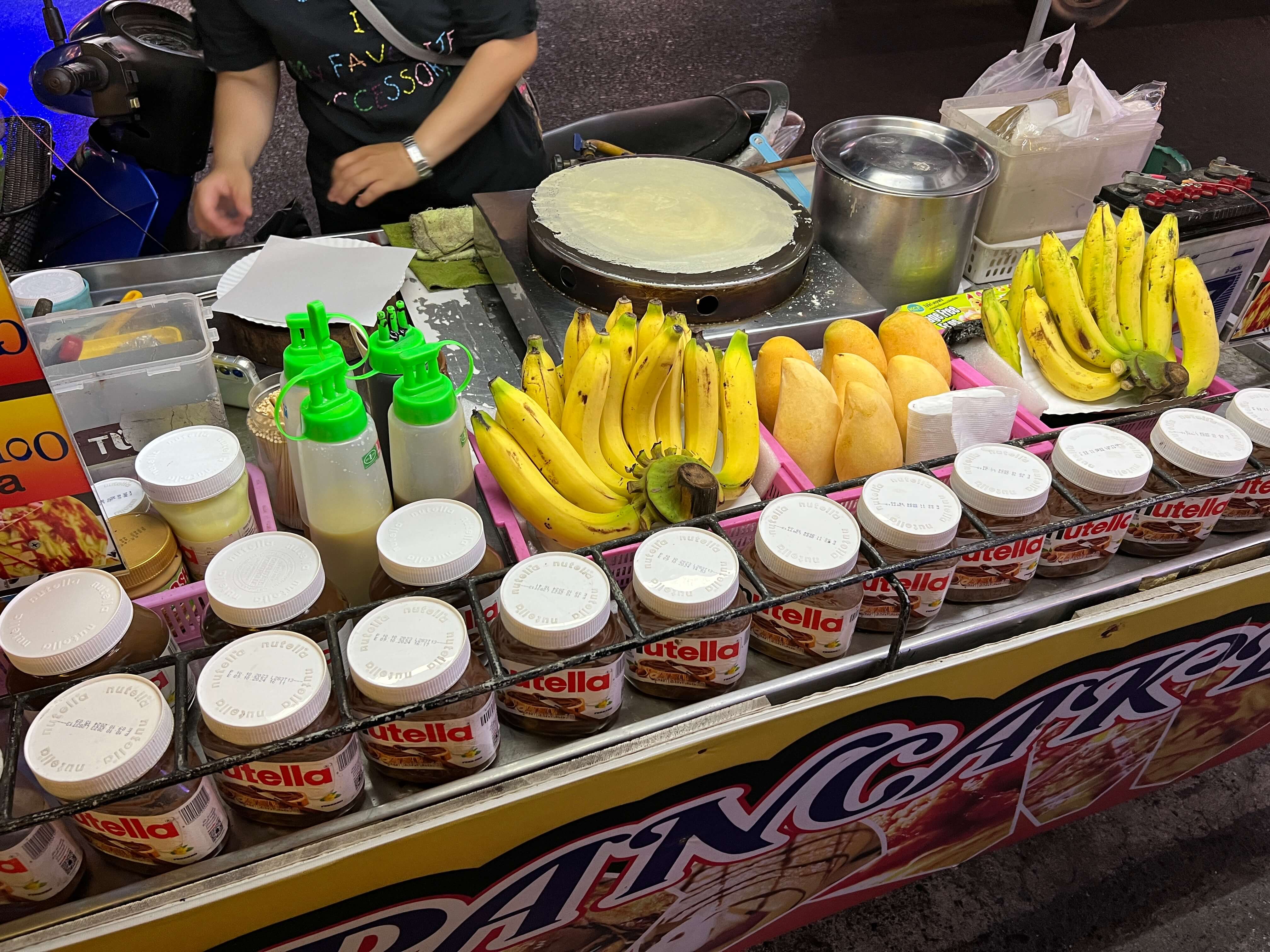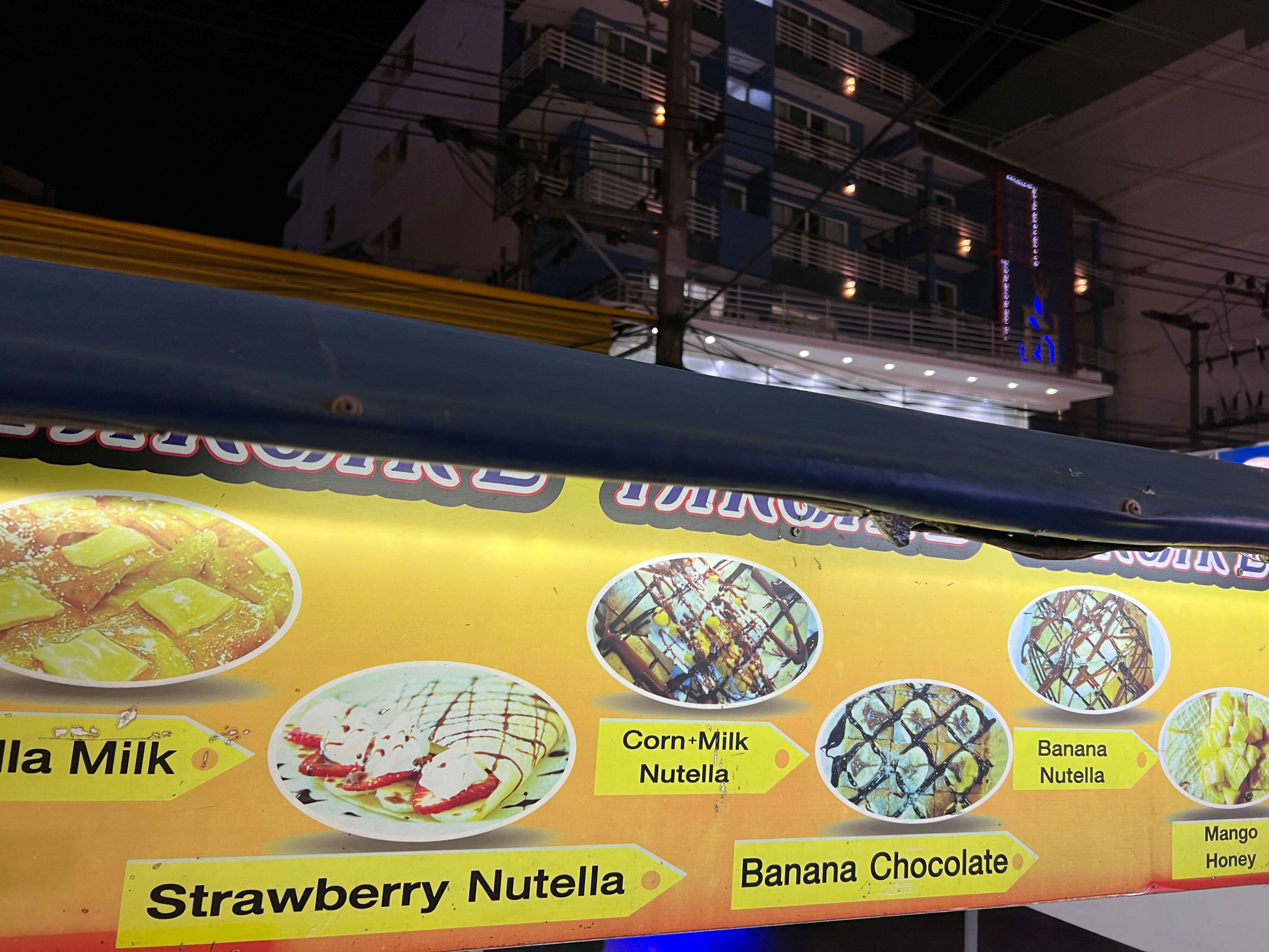 제가 주문한 건 누텔라 바나나 로띠입니다. 가격은 100바트(한화 3,800원). 태국 물가치고는 좀 비싼가? 싶기도 한데 빠통비치에가면 여러 노점상들이 있어서 가격 비교해보고 사셔도 됩니다.