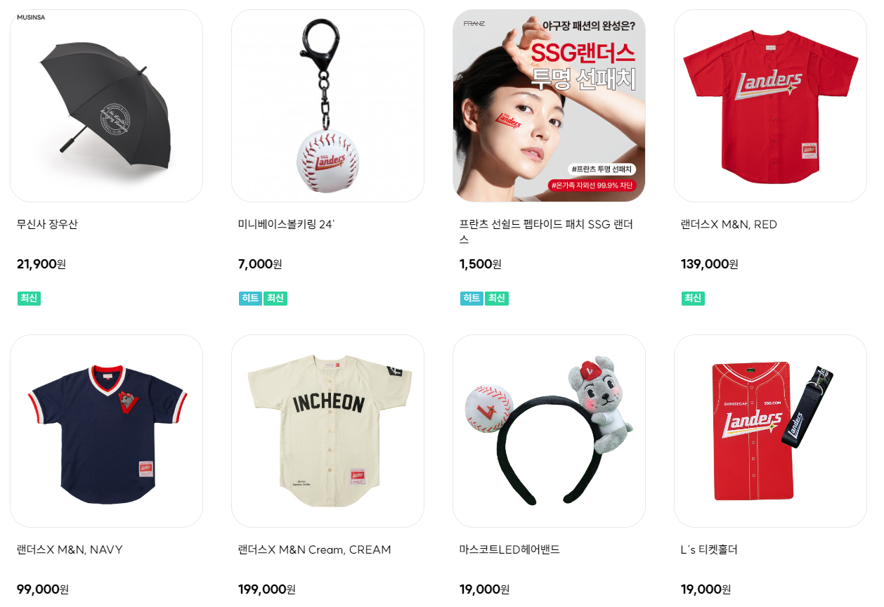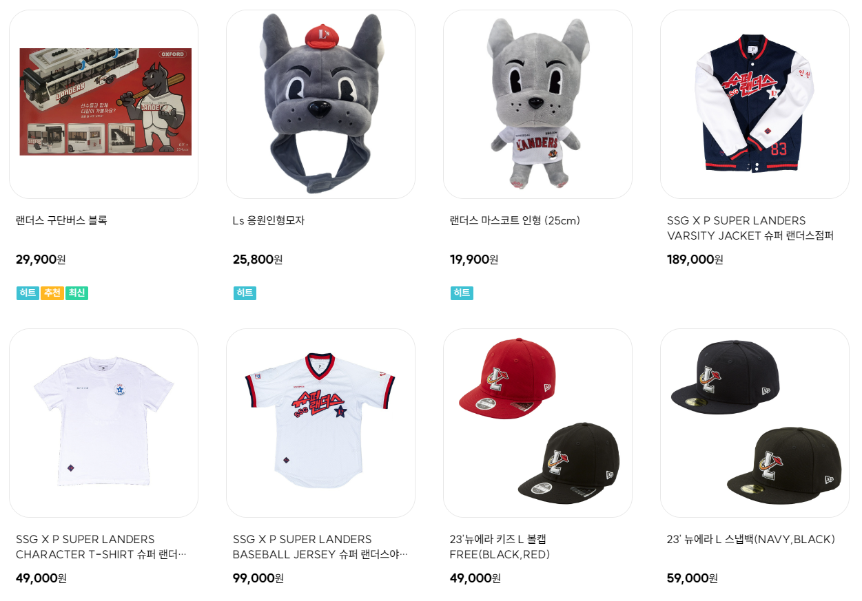 SSG 랜더스 유니폼&굿즈 판매가격