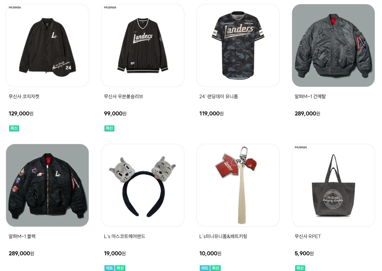 랜더스 공식 스토어에 들어가시면 더 많은 상품과 스페셜 굿즈 등을 구경할 수 있습니다.